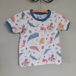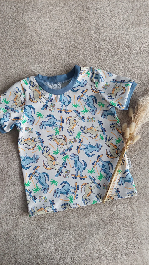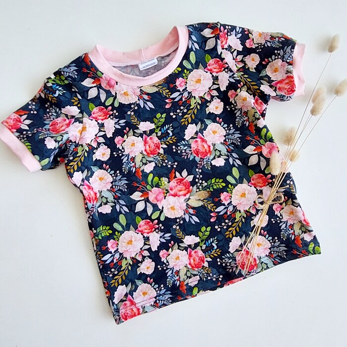 This super fun tee is made with a soft cotton/lycra stretch knit of your choice and contrast neck and arm bands for that cute retro feel. Perfect for summer with bloomers or shorties.